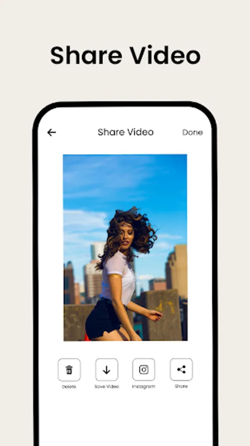 - Share your videos with your friends on instagram and facebook right from the app or share them later from your camera roll.