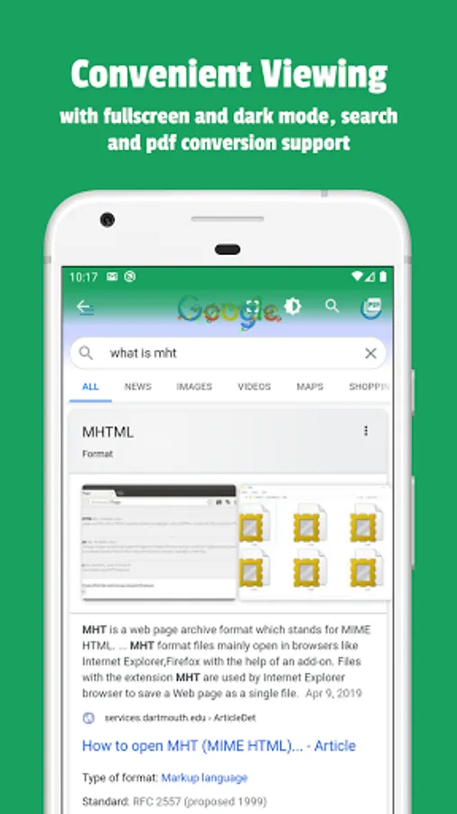 • Read and view .mht and .mhtml files