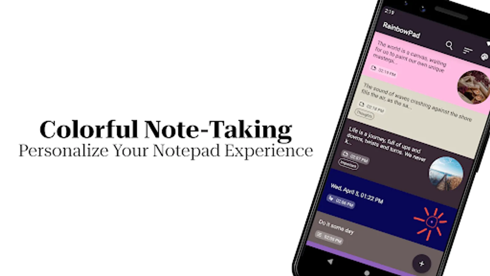 ** Keep your thoughts behind a lock: RainbowPad is a secure notepad with lock that protects your notes with a password or fingerprint lock, ensuring that only you have access to your sensitive information.