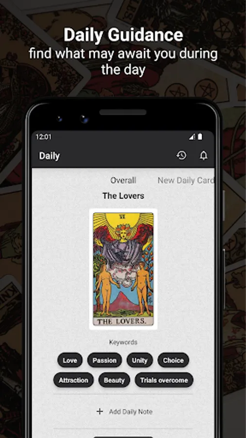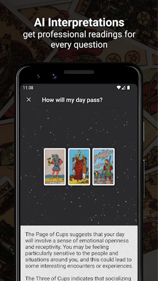 Tarot Divination provides a way to save every reading you make in your tarot journal. Come back anytime and find new aspects of the same answer. But if you forget to keep critical reading, don't be sad; the app will do this for you!