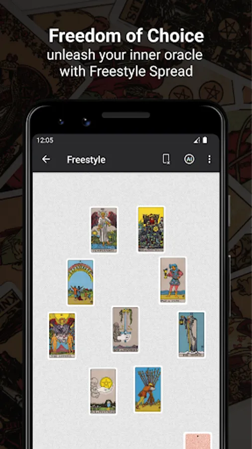 Get tarot reading and learn cards with freestyle layout. Do not block imagination to predefined spreads! Unrestricted freedom for you in the tarot world. Use the tarot spreads you want, or create your own.