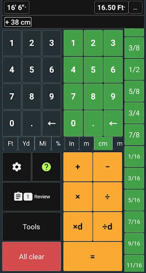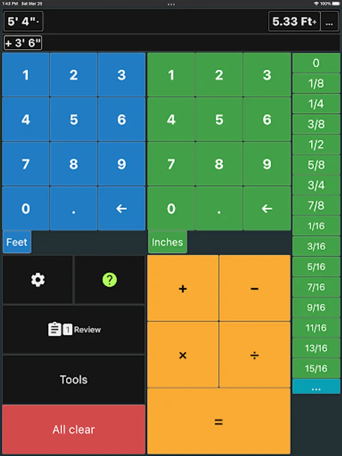 Green = Inches & fractions