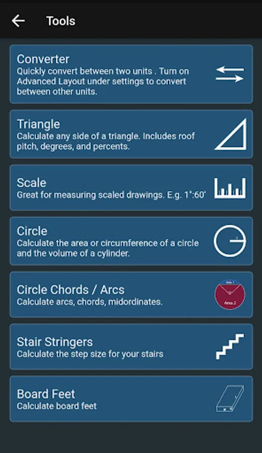- Unit converter (imperial to metric)