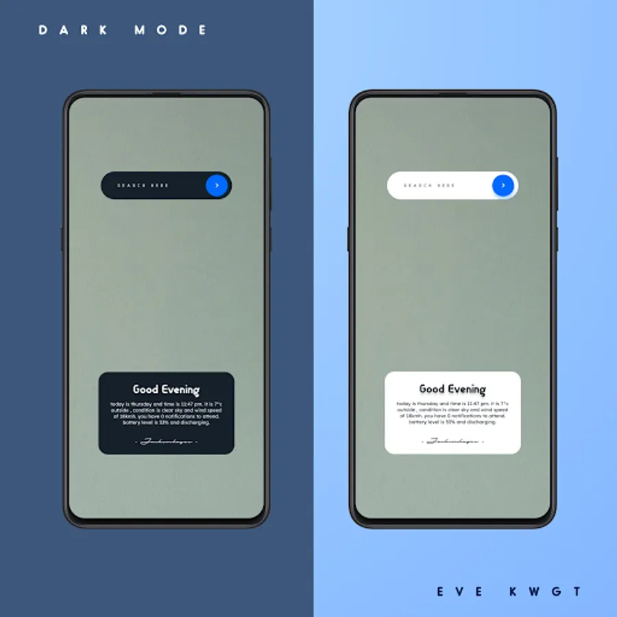 Eve KWGT is Creative, Minimal & Inspired Pack For Your Home screen with a touch of lift up designs.