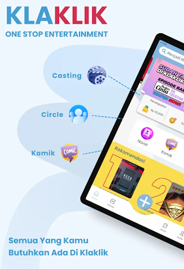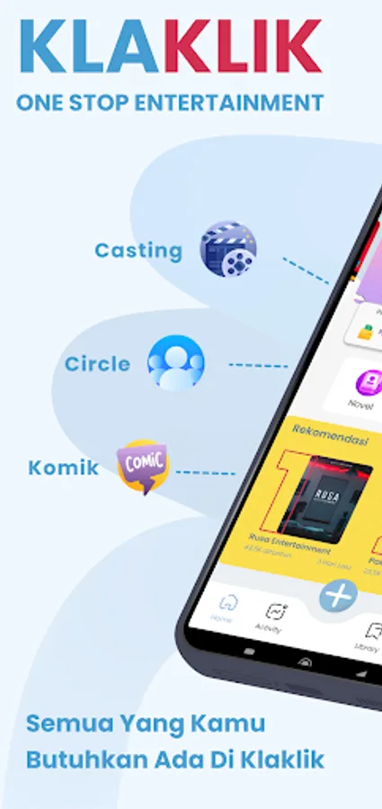 Klaklik adalah platform digital inofatif berbasis cerita pertama yang menyediakan delapan format di dalamnya, yaitu: PLAY, AUDIOPLAY, NOVEL, COMICS, CIRCLE, Online Casting.