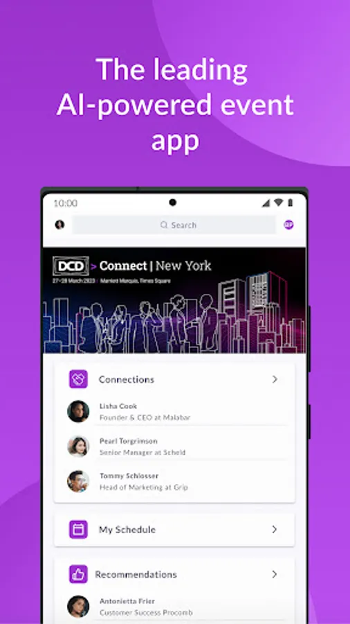 The DCD>Connect app also gives you access to your entry badge, personalized schedule and the option to sign up to additional onsite networking opportunities.