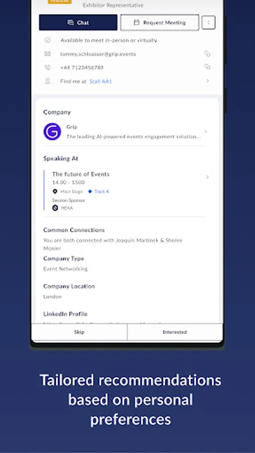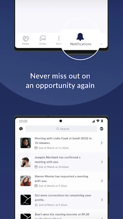 Meet handpicked contacts before, during and after the fair, such as exhibitors and visitors.