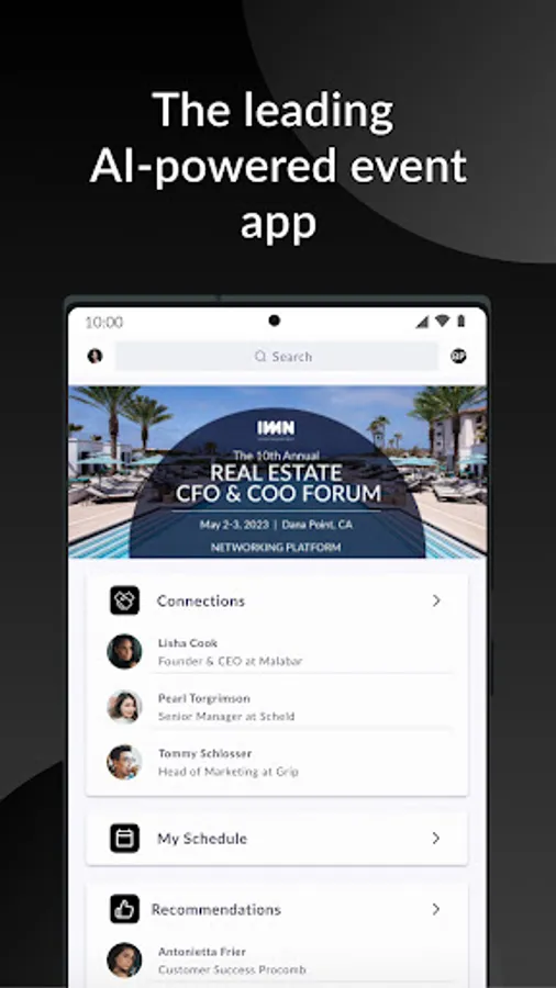 The official IMN Events app allows you to network, access the full agenda, view sponsors and exhibitors and find industry contacts. The app is designed to be used by all attendees to connect, meet, capital raise and develop new business. Make the most of IMN and download the IMN Events app today!