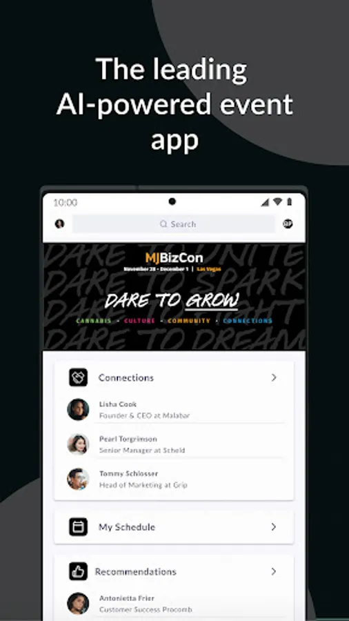Download the MJBizCon App - the official show guide to the event. You'll find over 1,400+ exhibitors and sponsors on an interactive show map - including a "You Are Here" functionality so you can easily find where you need to go next. You can access the entire conference timeline, conference agenda with detailed session descriptions and speakers, networking events. Plus, plan your time at the expo before you go - favorite the exhibitors and sessions you can't miss while at the event.