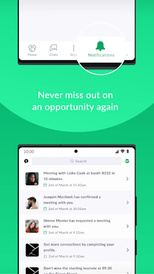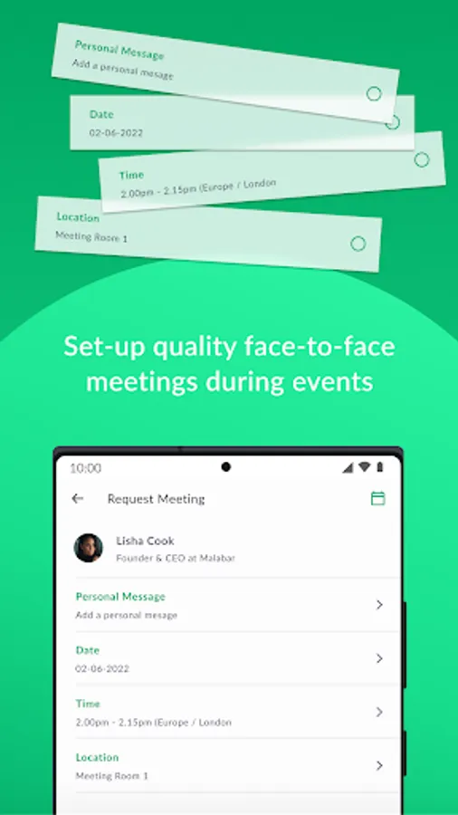 *View attendee profiles, chat and set up 1:1 business meetings in-person at events and virtually