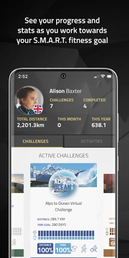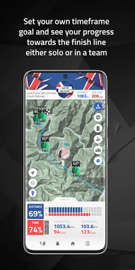 Every time you go for a run, ride, walk or any other activity you advance along the challenge route until you cross the finish line.