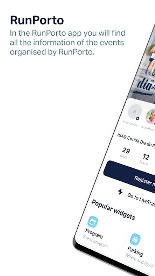 In this app you can keep all your statistics of the upcoming events held by Runporto.