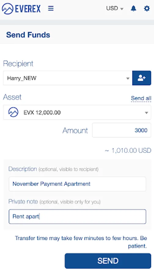 * Added private notes for transfers (visible to sender only)
