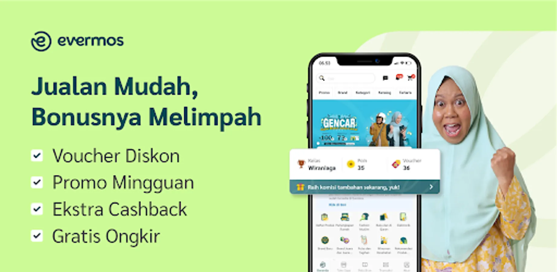 ✔️Free shipping and COD throughout Indonesia*, extra commissions, lowest prices and shopping vouchers only on the Evermos app