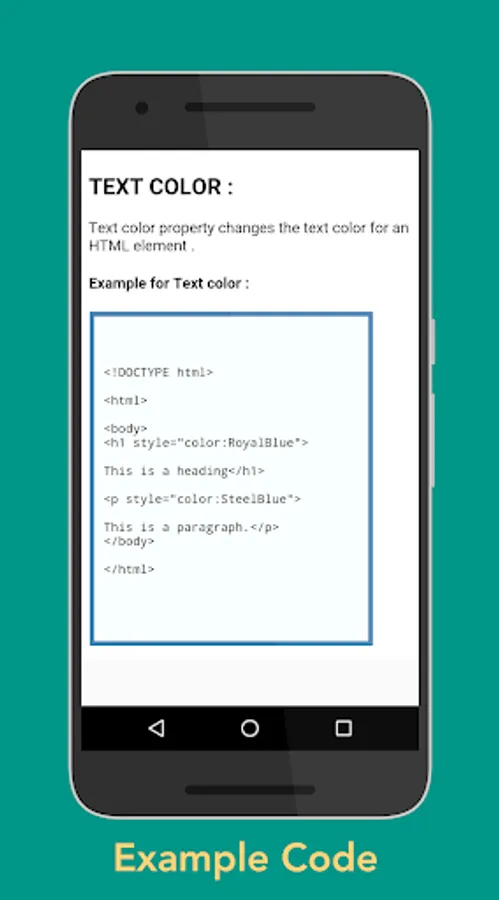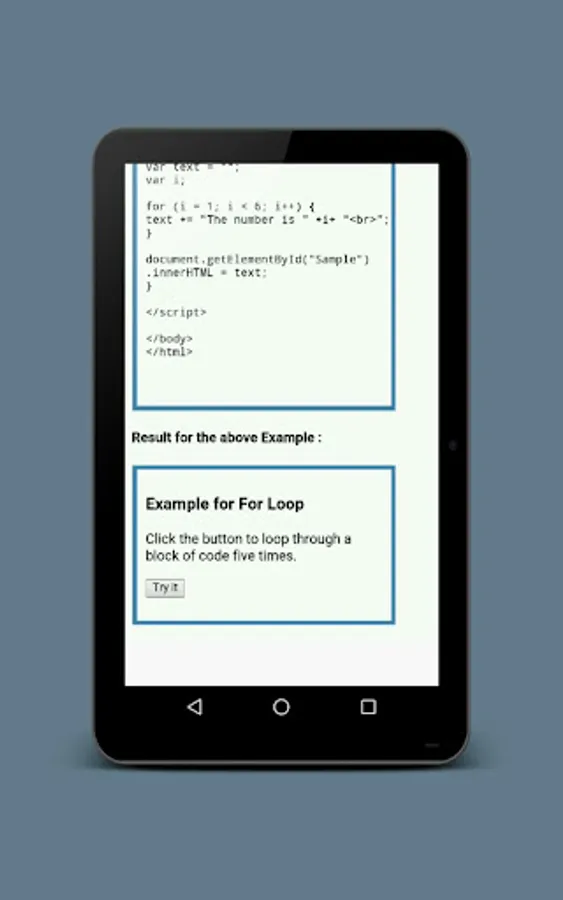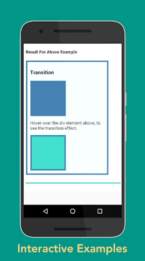 Web Development also features interactive examples and code which the user can interact with and easily understand, the codes for the example is very useful for the users to understand the particular topic. Web Development is also a Web editor and IDE which helps users to run the code within the app and tweak the webpage easily or try the example code themselves to understand the concept better.