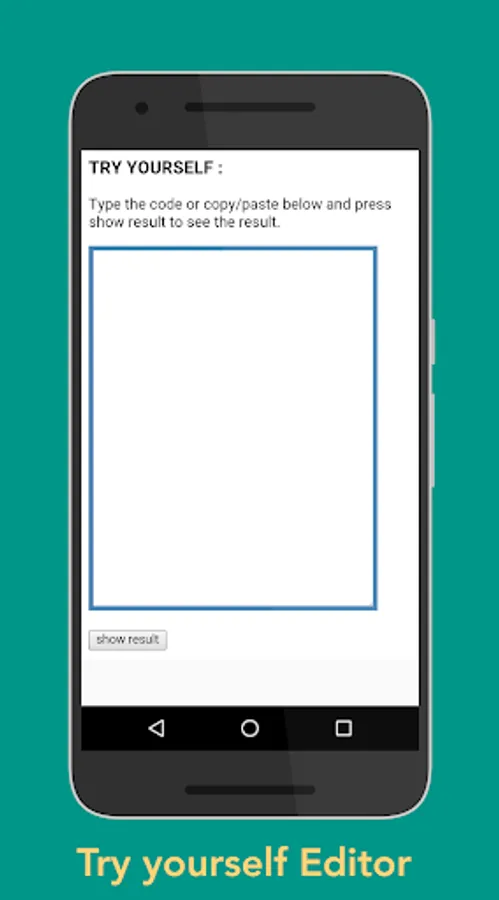 TRY YOURSELF EDITOR : One of the simplest editor to run the web page or run the example codes within in the app.