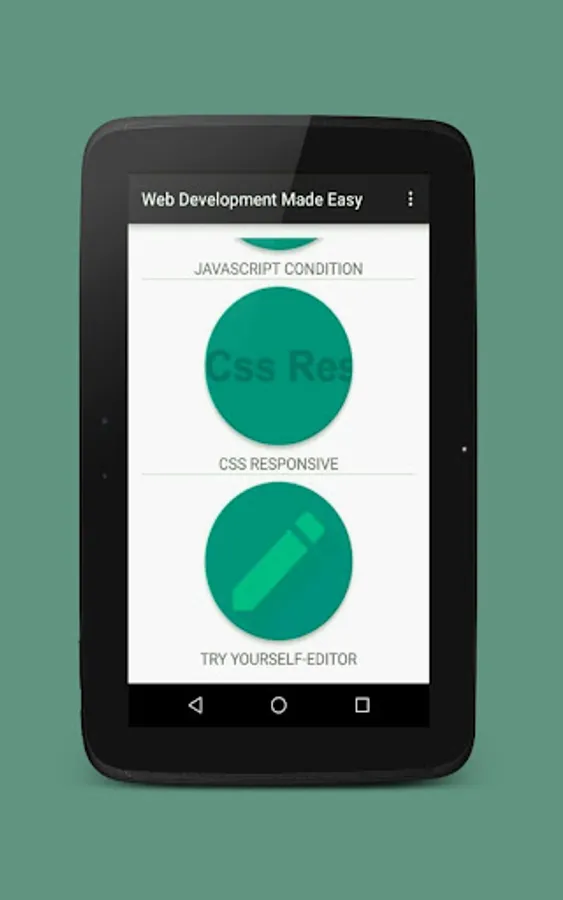 Web Development is a Free app which teach you how to design and develop a web site using HTML, CSS, JAVASCRIPT , Responsive Web design and Content Management Systems like (Wordpress, Joomla and Drupal) and other advanced topics directly on your Android devices. All the lessons and topics are featured in a simple way and it is divided into small sub topics for better understanding, also it has interactive examples and web editor in which user can try the code themselves and find the result realtime within the app.