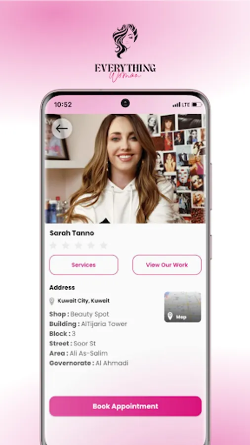 تم إنشاء التطبيق Everything Woman لجمع أفضل فناني المكياج في الكويت معا. سيساعد هذا التطبيق في تسهيل الحجوزات والتوافر لعملائنا بأكثر الطرق ملاءمة ممكنة. سيتمكن العملاء من الوصول إلى الأوقات والتواريخ التي يفضلونها. مع ما يقال، فإن الخدمات التي تقدمها Everything Womanستساعد فنان المكياج والعميل على إنشاء عملية حجز أسهل.