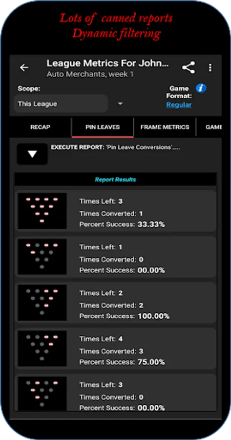 • All frame-level reports can be executed on Baker format games and/or mid-game substitute bowlers, giving individual frame statistics per bowler
