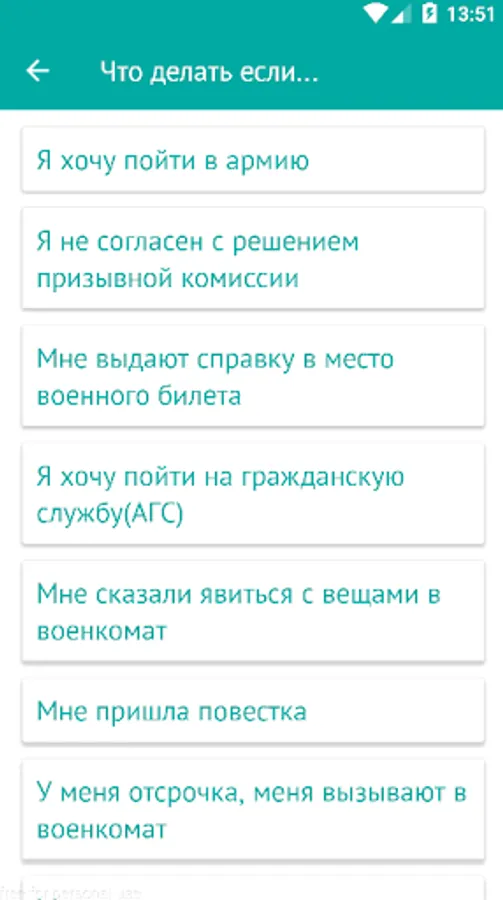 In addition, the app you will find lots of useful information and answers to frequently asked questions of the recruit - what to do if you have a deferment, but you are called to military enlistment as to perform alternative civilian service (ACS), how to get a military card, if you do not are fit for military health, where to call to complain about the illegal actions of officials, etc.