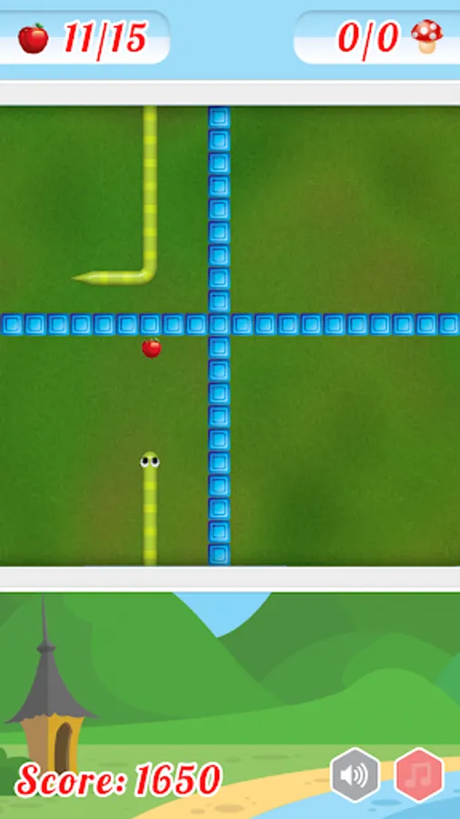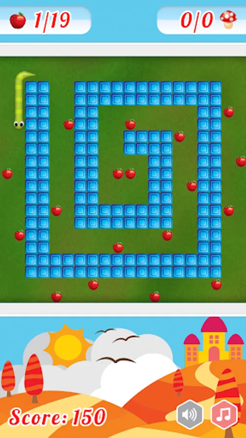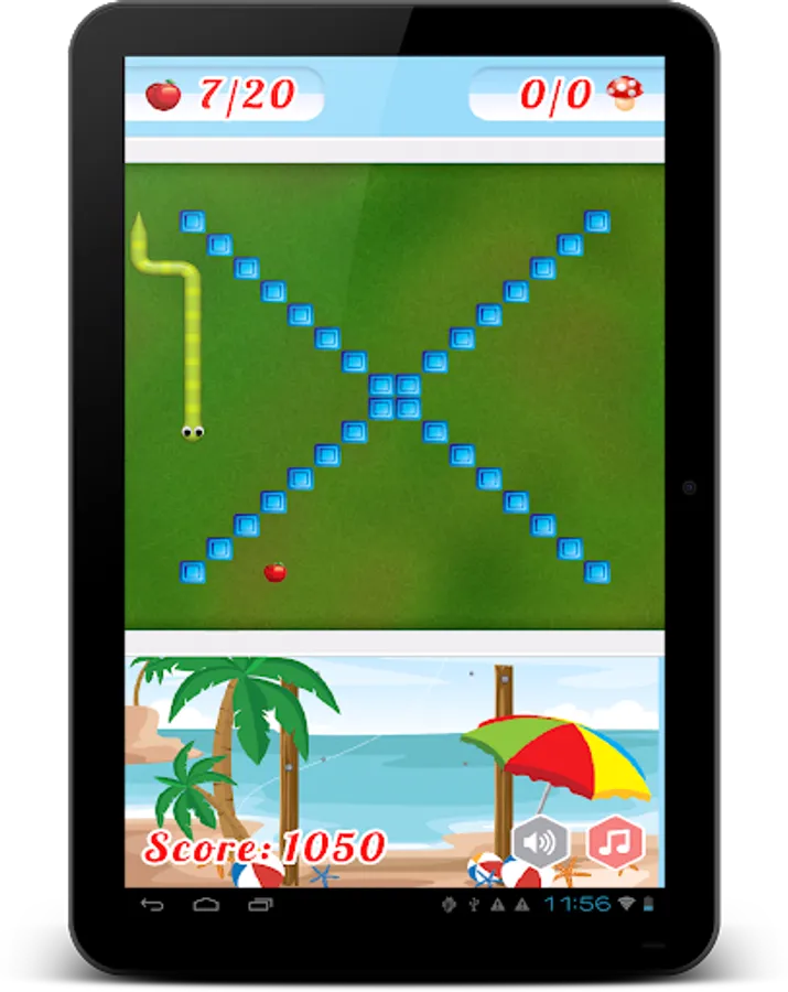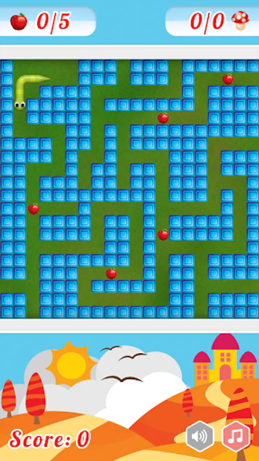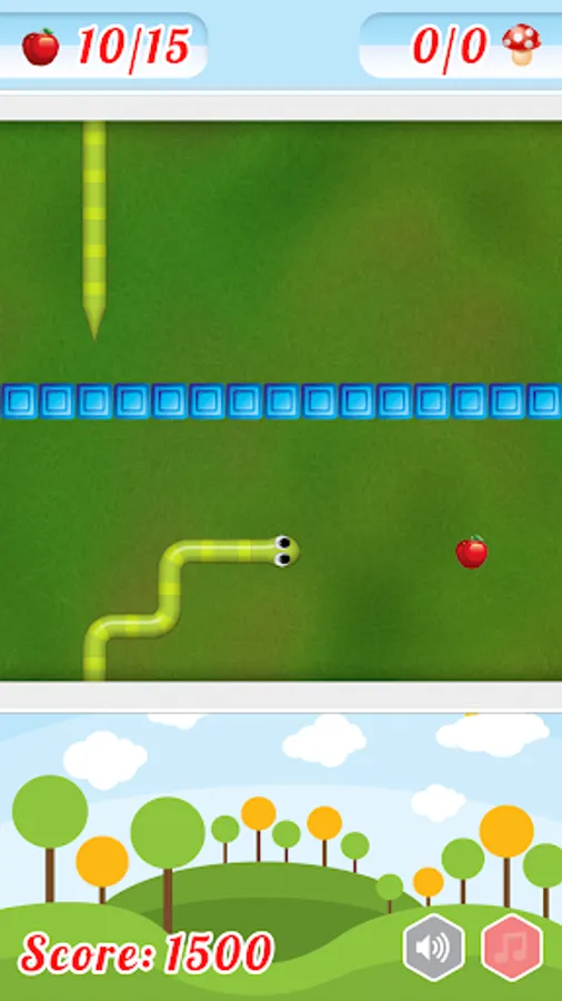 Swipe to control the snake, eat all apples and mushrooms to pass the level, avoid obstacles and your tail.