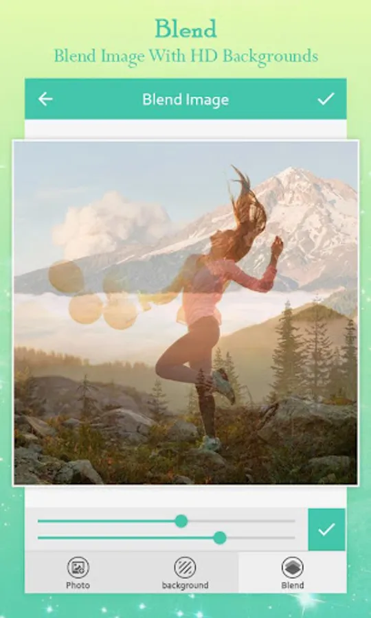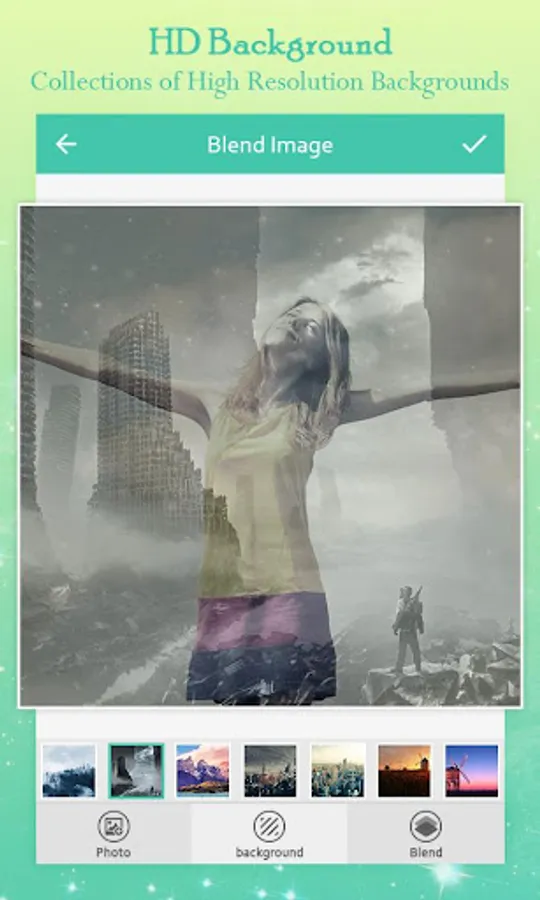 ⇒ Add blend effect on your picture. You may select any HD background images from library.