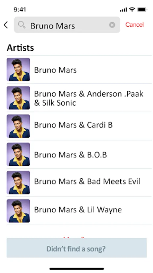 You can search songs by artist, title and lyrics directly from your smartphone. Now you don't have to wait until the printed catalog becomes available in the club.