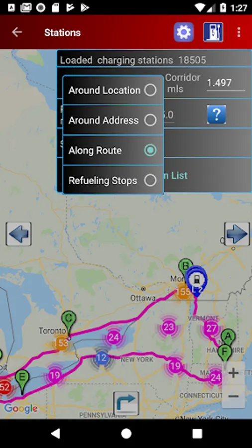 There is a free version EV Station Finder USA&CAN and a paid version EV Station Finder USA&CAN Plus.