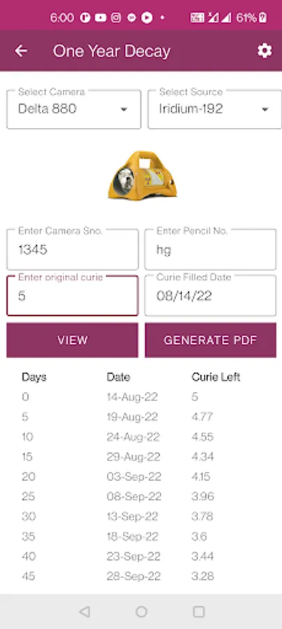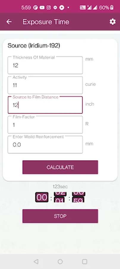 of Iridium-192 (Material-Steel,Concrete,Tungsten,Lead), Selinium-75 (Material-Steel,Concrete,Tungsten,Lead) and Cobalt-60 (Material-Steel,Concrete,Tungsten,Lead) source.