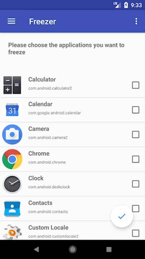 Just select the application you want to freeze or unfreeze from the list, and hit the button. Selected application will be processed base on your request. If you found out that the application you want to freeze is not listed, please try to adjust it in Settings.