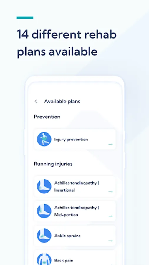 2. Select your injury rehab plan or the prevention plan
