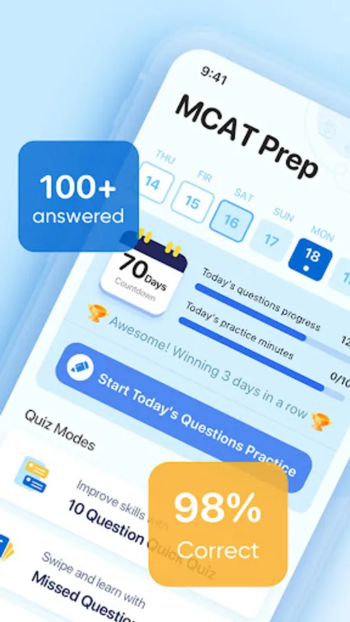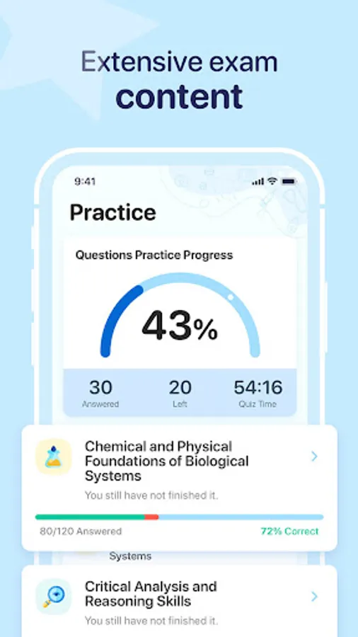 MCAT Exam Prep 2023 is an exam preparation application that will help you successfully pass The Medical College Admission Test (MCAT) developed and administered by AAMC with a high score on your first attempt.