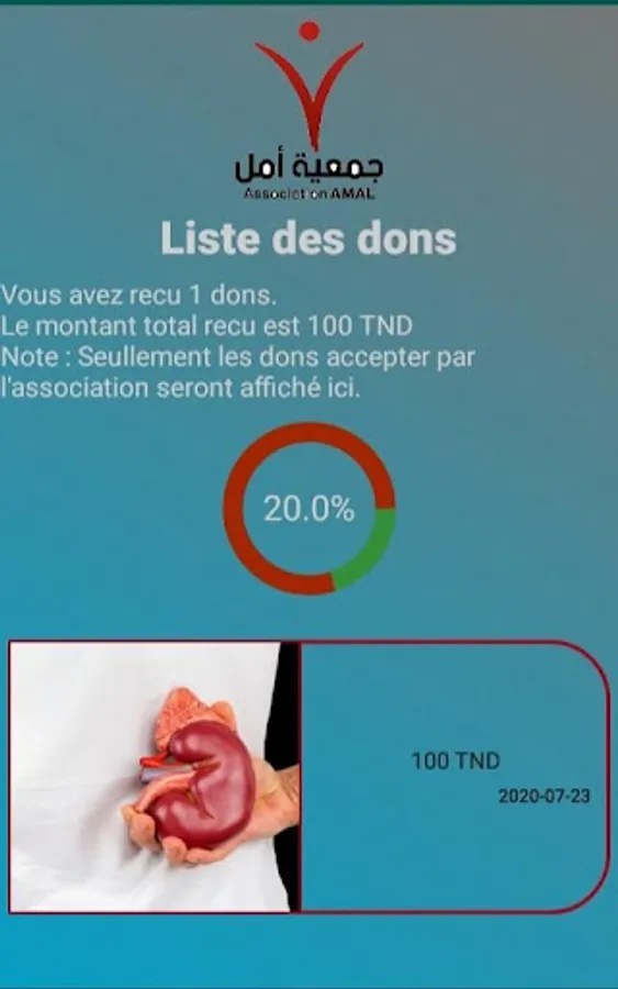 Amal Association for Renal Insufficiency Medenine is a humanitarian charity outpatient association subject to law number 154 of November 7, 1959, which is revised by fundamental law number 90 of 1988 of August 2, 1988 and law 25 of 1992 of April 1992.