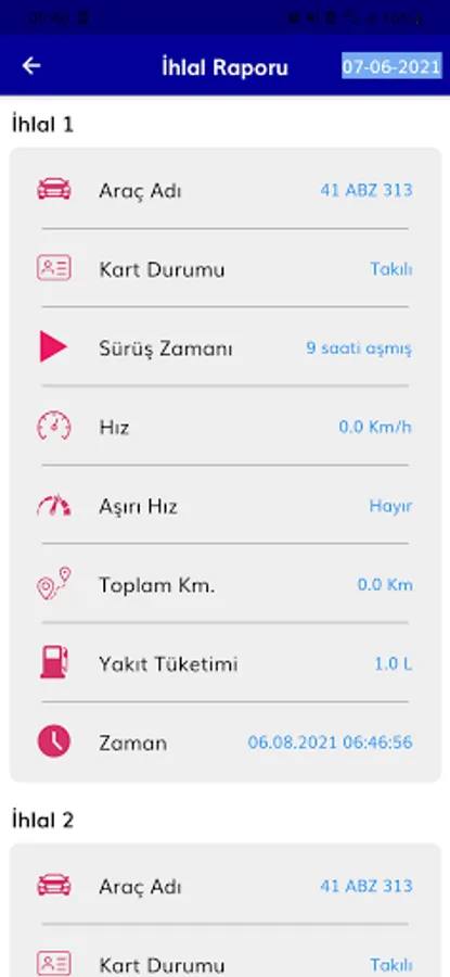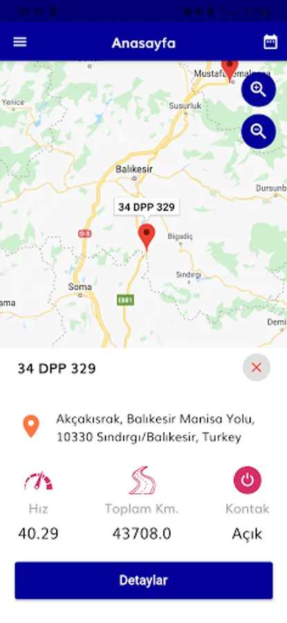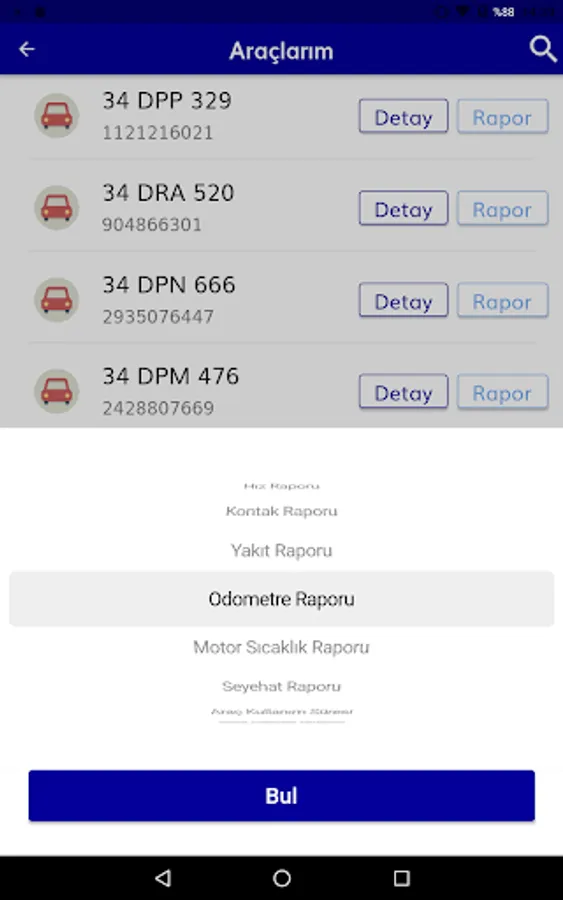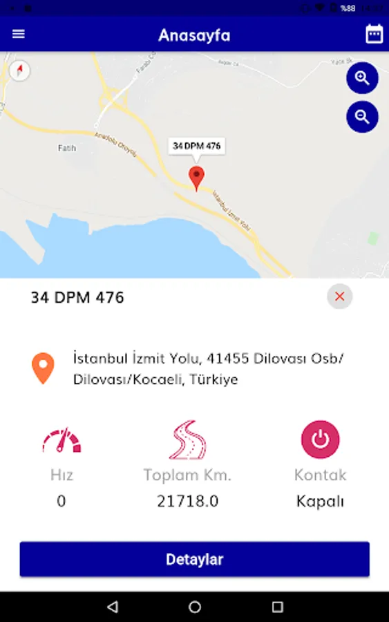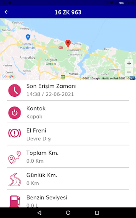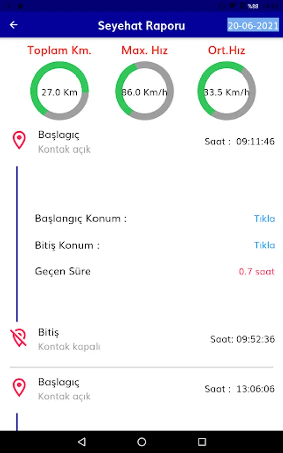 You can see the list of vehicles processed into the system, where they are on the map, their speed and location histories, and the reports of the devices.