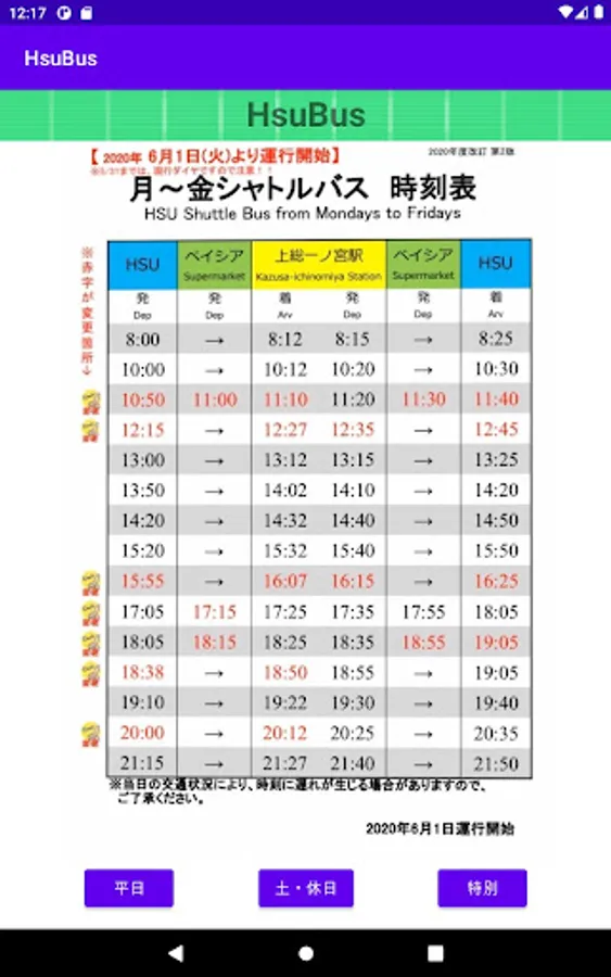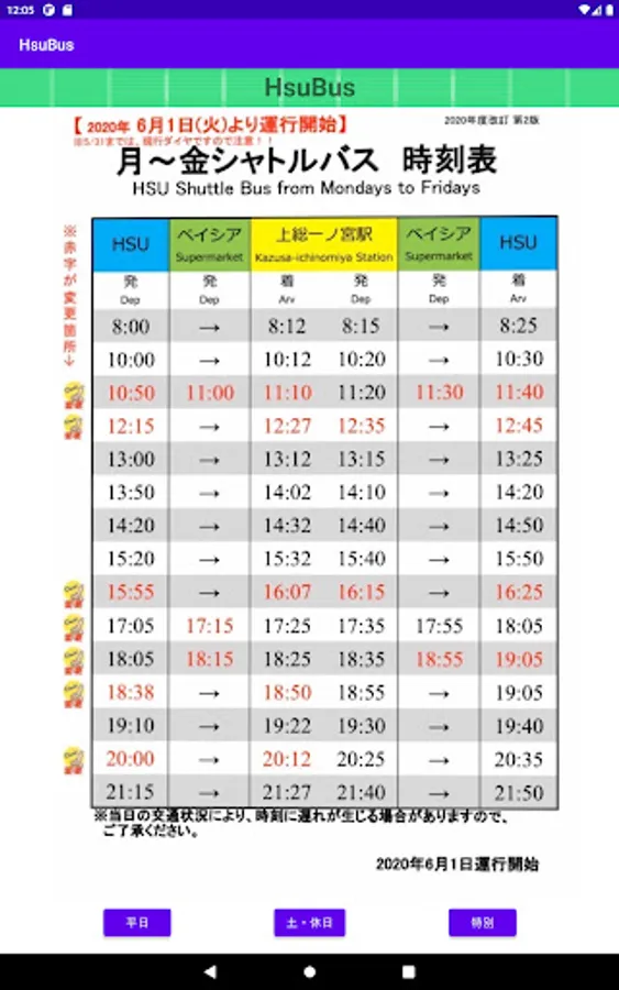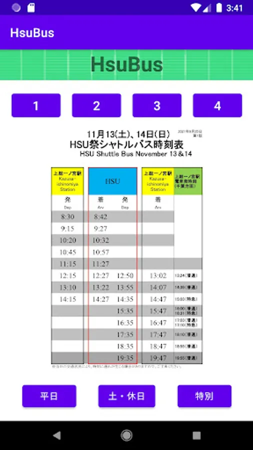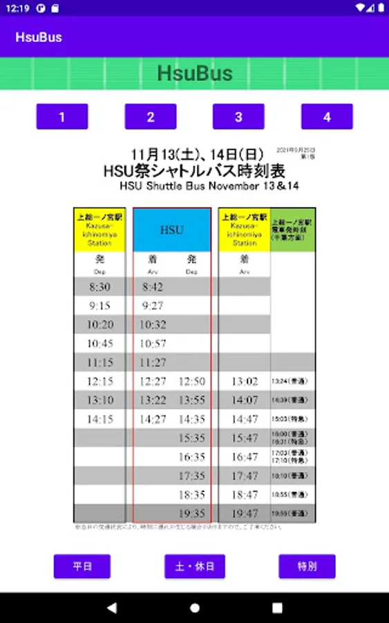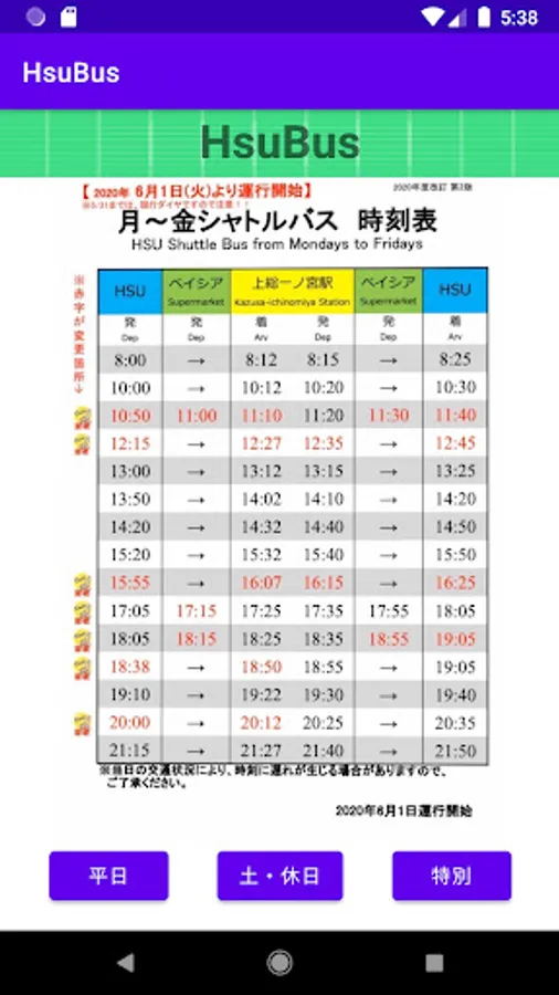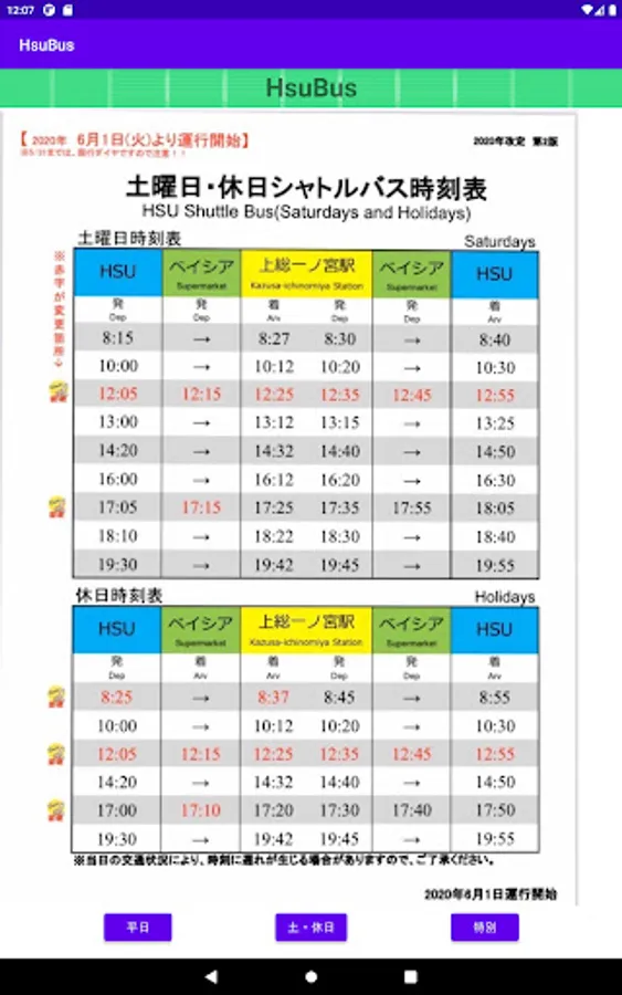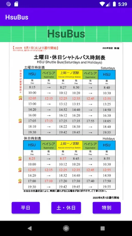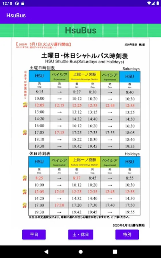 It is an application that you can check the bus timetable of HSU (Happy Science University) -Chosei Campus-.