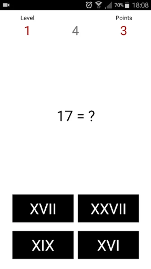 - train your roman numerals knowledge - you are asked to translate numbers from Arabic to Roman numeral system;