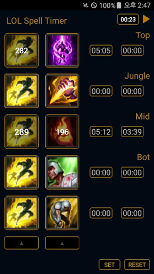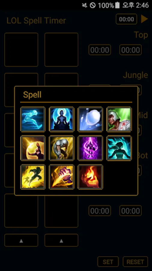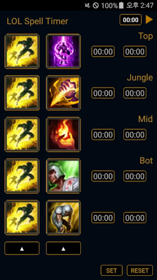 - or by pressing the arrow button on the bottom left, you can set all the D or F spell spell once.