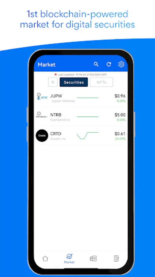 No market makers, no short selling, or other market manipulations. Control your shares directly on your smartphone and trade with other investors around the globe.