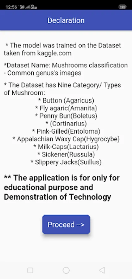 The Application can classify Nine categories of mushrooms that are commonly found.
