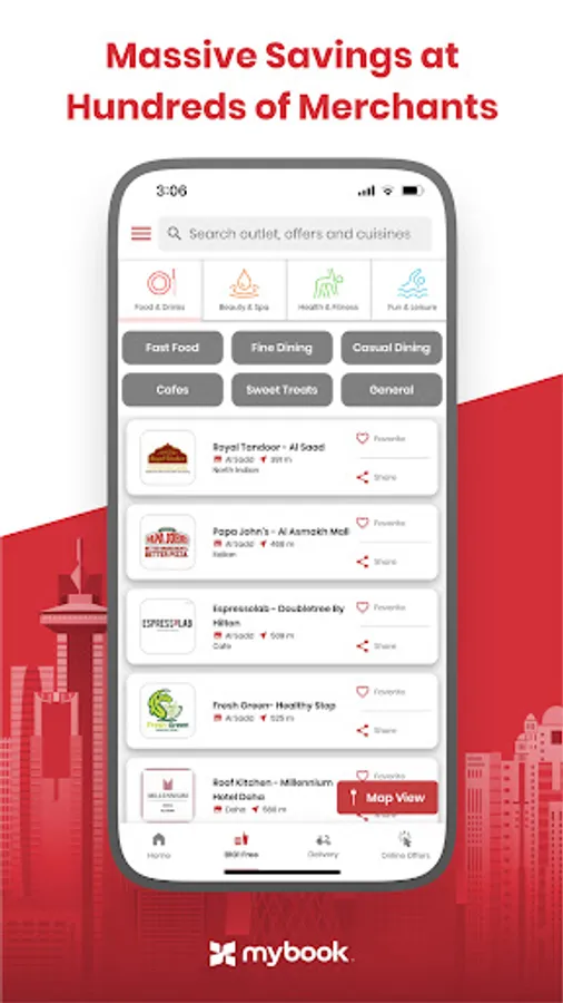 Experience fine dining restaurants, casual dining, top leisure attractions, family theme parks and hotels, luxurious spa treatments, salons at half the price – you’ll find it all on the Ezdan Holding-My Book app.