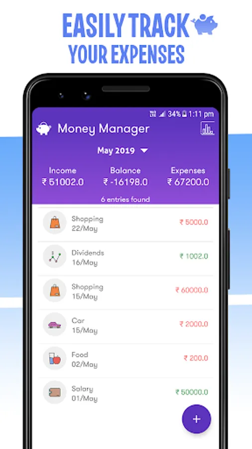 Money manager is a free, simple and easy to use expense tracker app that is light to install and works swiftly across all versions of Android. It fits perfectly into your daily life helping you stay organised and productive with your expenses, reminders and many useful features.