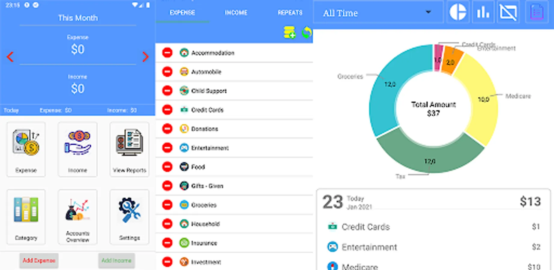 Expense Manager makes managing personal finances as easy as pie! Now easily record your personal and business financial transactions, generate spending reports, review your daily, weekly and monthly financial data and manage your assets with Money Manager's spending tracker and budget planner.