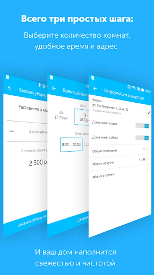 Make cleaning a few touches through the application Cleaning Expert now! To do this, simply enter your email address, specify the number of rooms in the apartment, choose the time and harvest date, and leave a comment with a wish for a specialist.