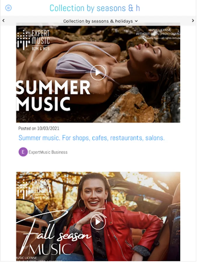 Music licensed for beauty salons, cafes, restaurants, shops, malls, hotels, gyms, offices, business centers...