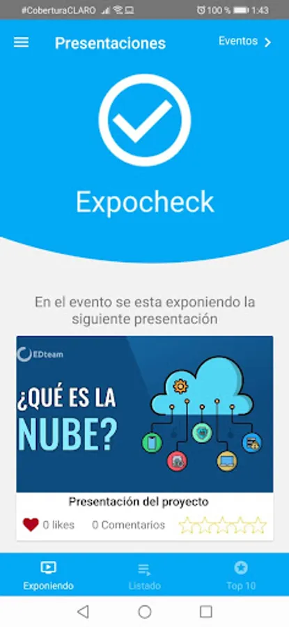 Expocheck is made up of two parts, a web part in which you can manage events and a mobile part in which you can subscribe to them, evaluate presentations, comment and much more!