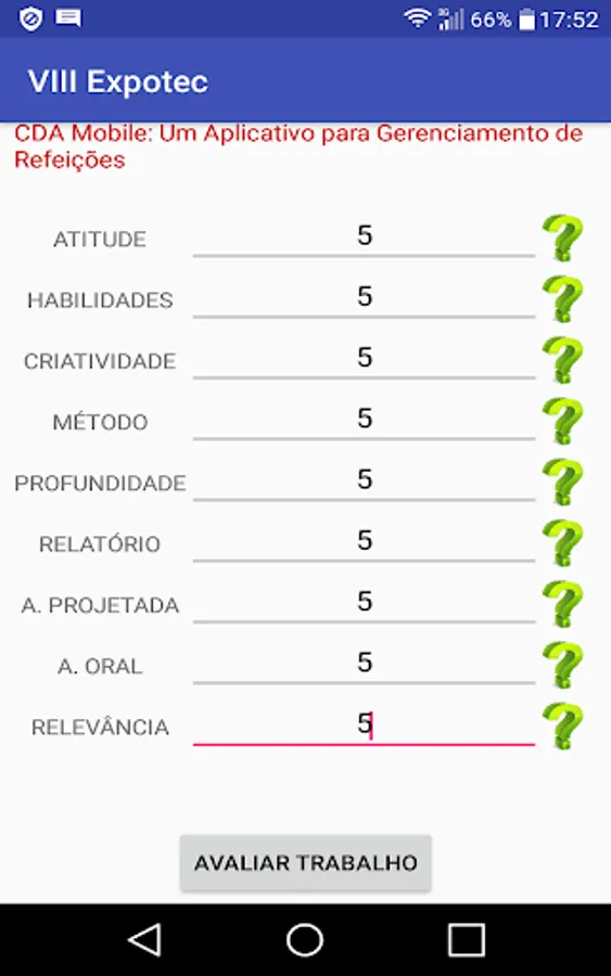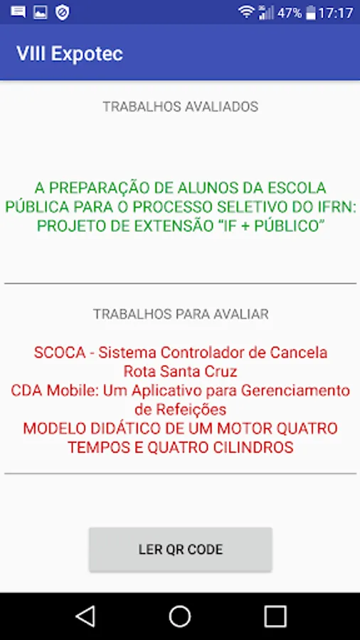 Application to evaluate works presented during VIII of IFRN campus SC