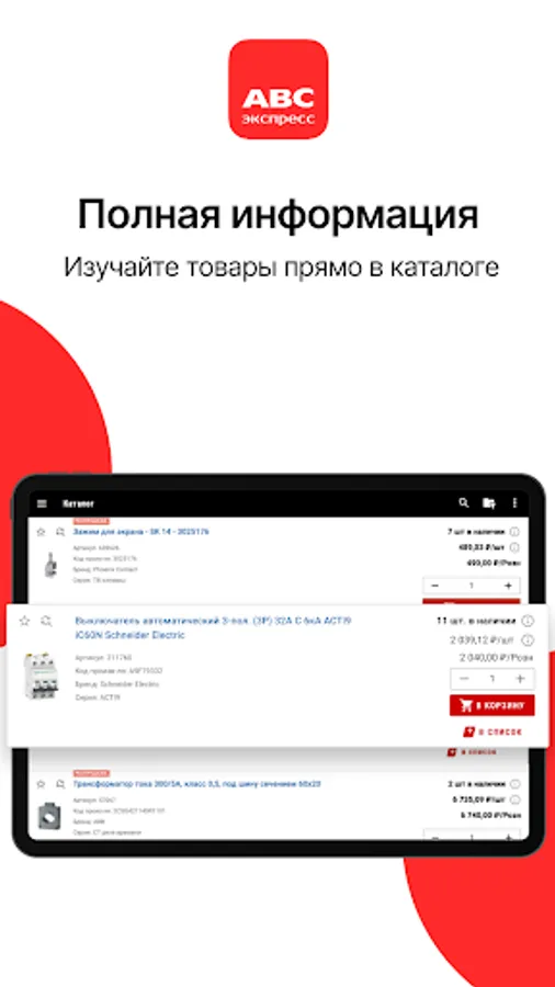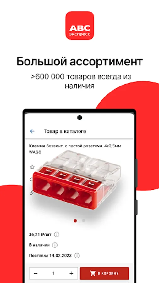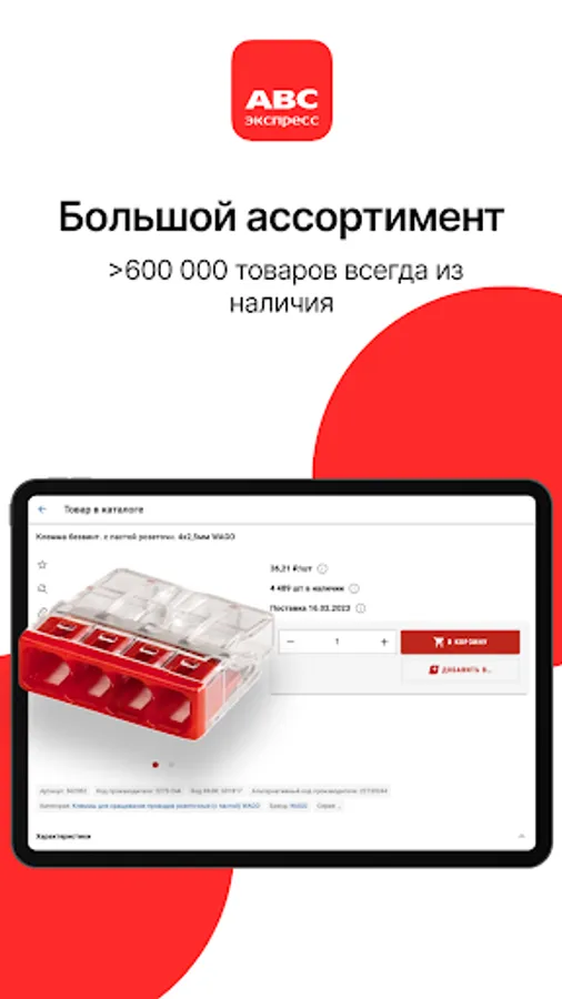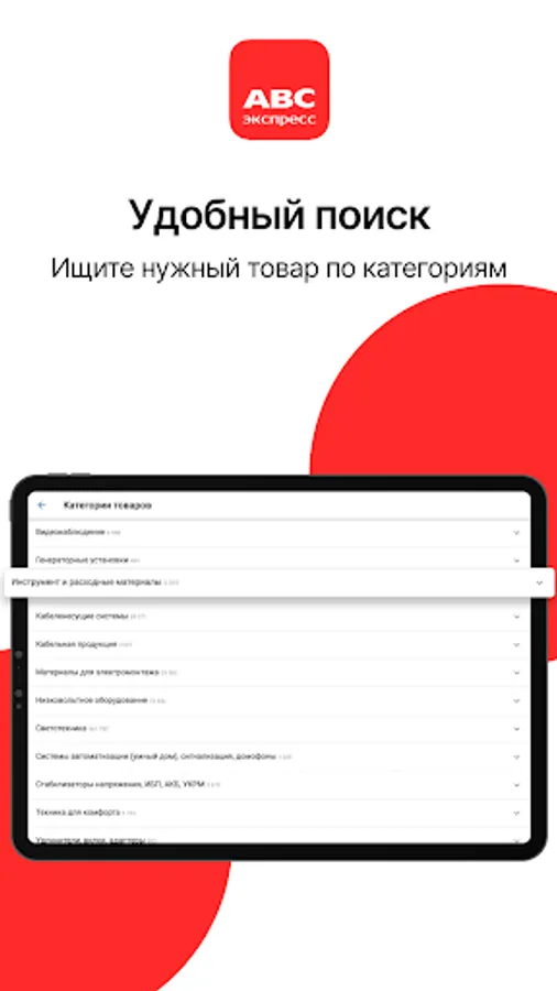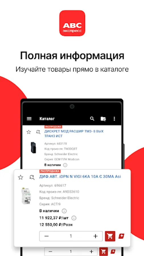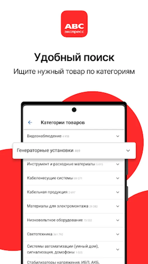 The application of the AVS-electro online store is 1 million electrical materials in stock.