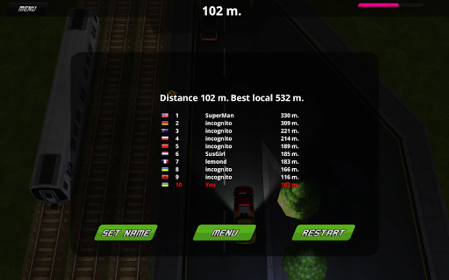 The simple but not easy racing game. Choose you car, select map and Go! Tap left or right side on the screen to detour other cars on the road and drive as far as possible. It's not easy as you think.