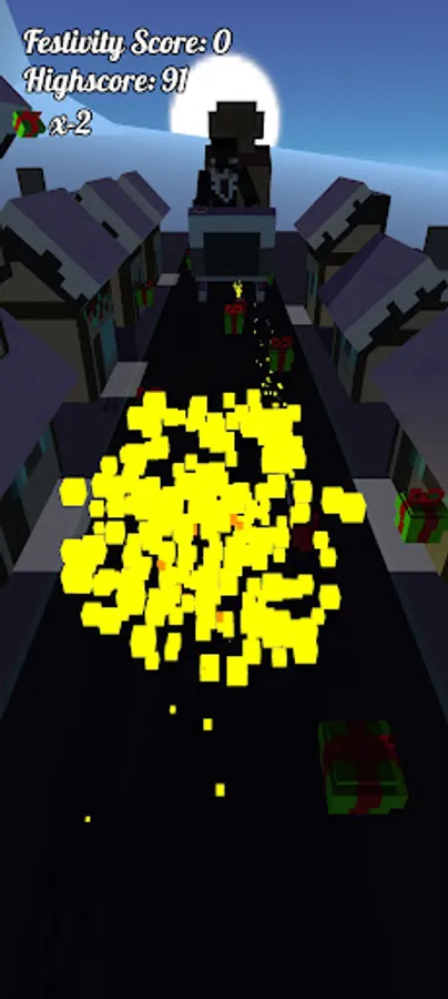 Gain points by gathering and delivering presents to houses! (hover above the glowing fronts while having 1+ presents)