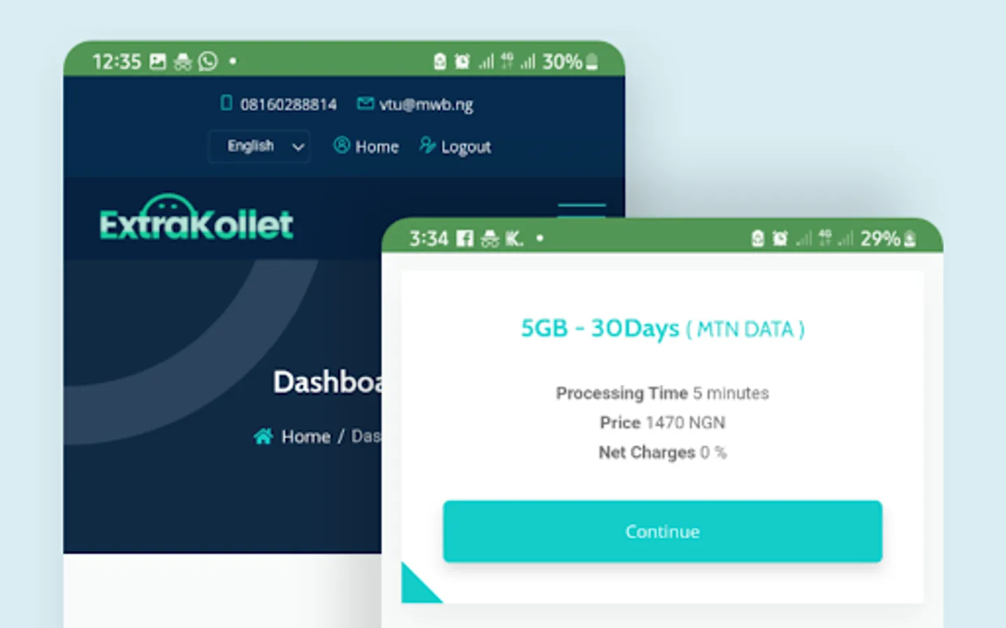 Buy and Book, MTN, AIRTEL, 9MOBILE, GLO Data App, Cable, Electricity, Exampins on ExtraKollet.